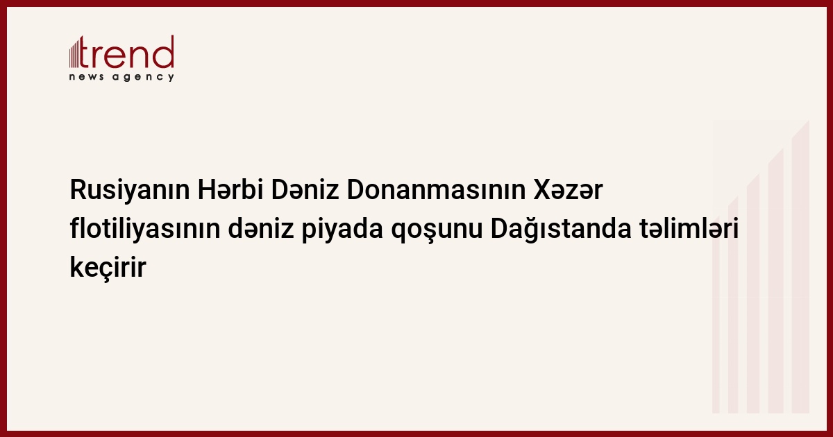 Rusiya Federasiyası Hərbi Dəniz Donanmasının (HDD) Xəzər flotiliyasının dəniz piyada qoşunu Dağıstanda batalyon taktik təlimlərinə başlayıb. Trend xəbər verir ki, bu barədə RİA Novosti çərşənbə axşamı Cənub Hərbi Dairəsinin mətbuat xidmətinə istinadən məlumat yayıb.