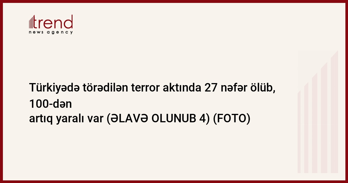 "TRT Haber" telekanalının hadisə ilə bağlı verdiyi məlumata görə, terror aktında 27 nəfər ölüb.