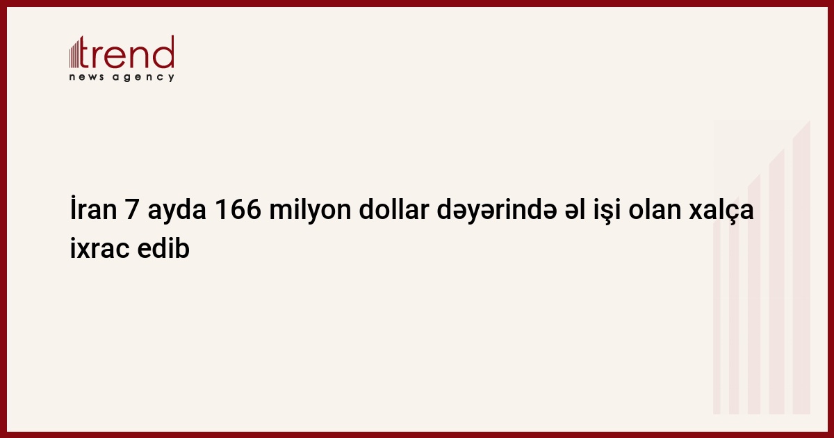 H.Kargər bildirib ki, ötən 7 ay ərzində ümumi çəkisi 2620 ton, 166 milyon dollar dəyərində əl işi olan xalça İrandan dünyanın 80 ölkəsinə ixrac olunub. Bu rəqəm ötən ilin eyni dövründə isə 3100 ton, 202 milyon dollar təşkil edirdi.