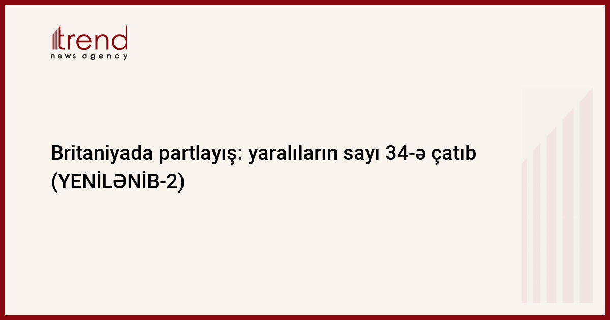 Britaniyada baş vermiş partlayış nəticəsində yaralıların sayı 32 nəfərə çatıb.