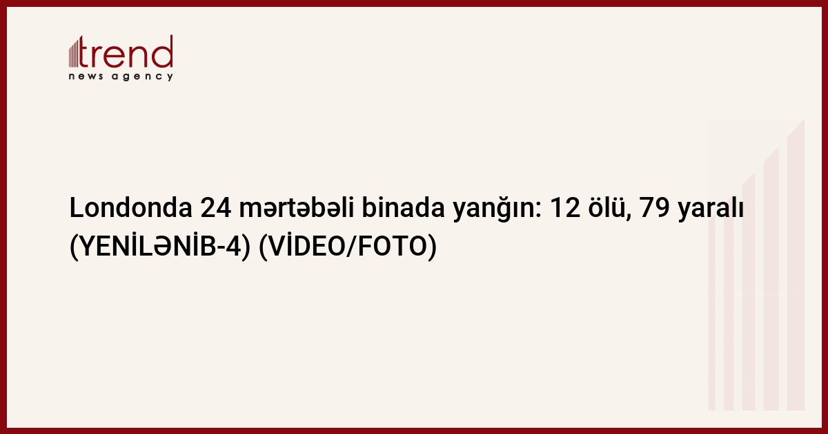 Londonda 24 mərtəbəli yaşayış binasında baş vermiş yanğın zamanı ən azı 6 nəfər həlak olub.