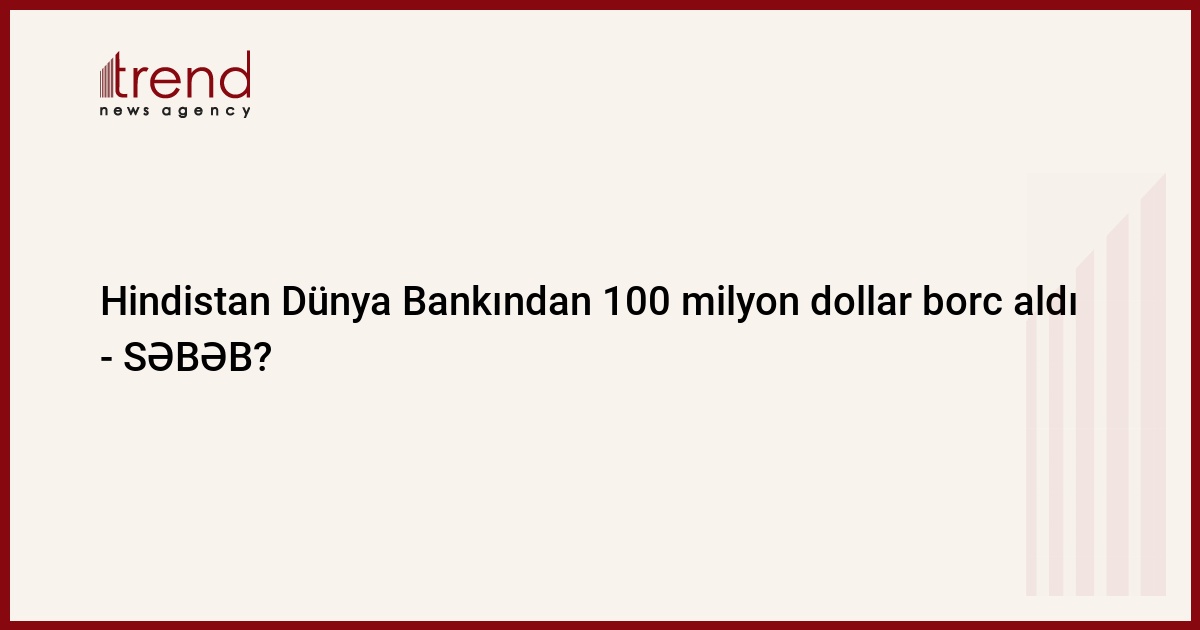 Hindistan Maliyyə Nazirliyinin məlumatında deyilir: "Hindistan Dünya Bankı ilə 100 milyon dollar vəsaitin ayrılmasına dair müqavilə imzalayıb. Bu vəsit günəş elektrik stansiyaları ilə bağlı layihə üçün nəzərdə tutulub".