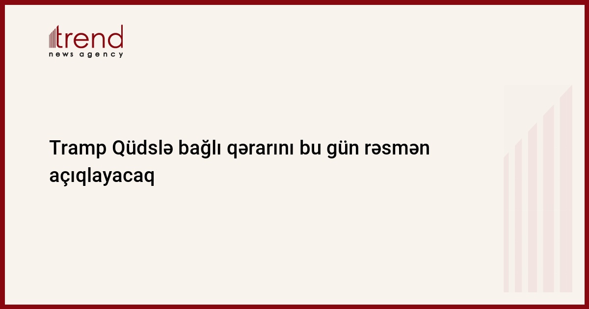 ABŞ prezidenti Donald Tramp Qüdsün İsrailin paytaxtı kimi tanınmasına dair qərarını bu gün rəsmən açıqlayacaq. Trend-in məlumatına görə, bu barədə yüksəkrütbəli Ağ Ev rəsmisi deyib.