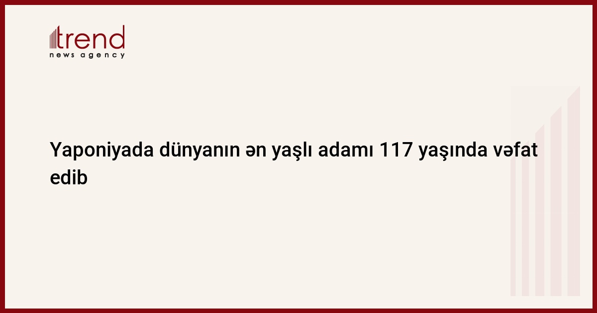 Yaponiyalı xanım Nabi Tadzima 117 yaşında Yaponiyanın cənub-şərqində xəstəxanada dünyasını dəyişib.