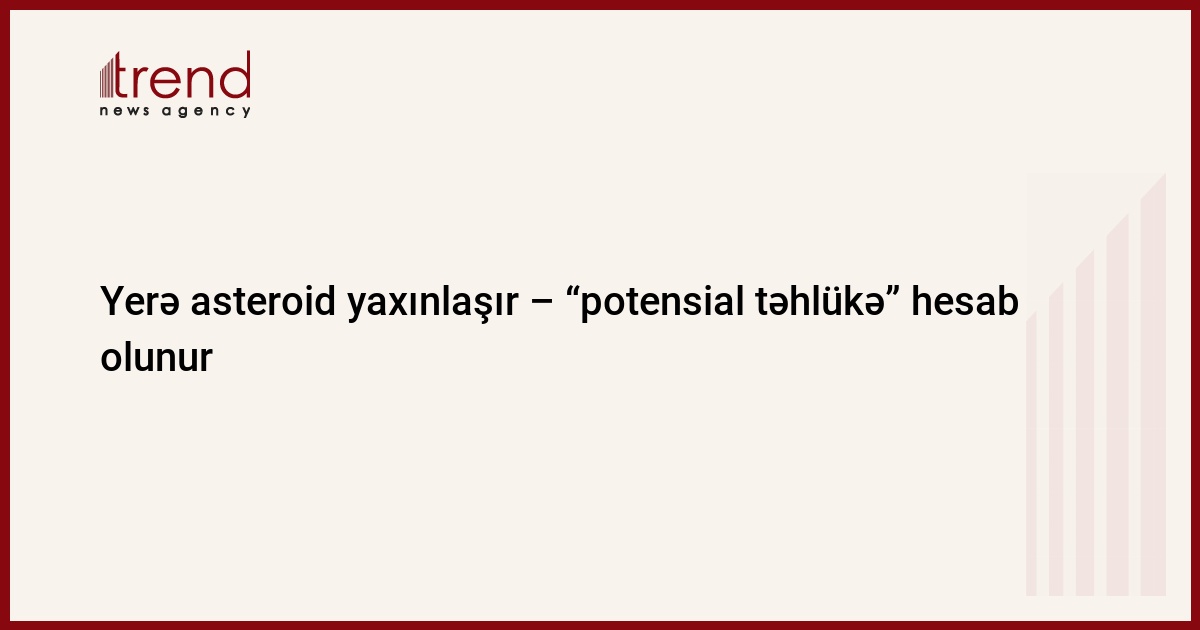 Trend NASA-ya istinadən xəbər verir ki, Yer kürəsindən 7,5 milyon kilometr məsafədən keçəcək asteroid “potensial təhlükə” hesab olunur.