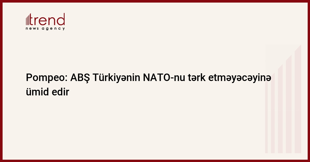 ABŞ Türkiyənin NATO-nu tərk etməyəcəyinə ümid edir. Trend-in məlumatına görə, bu sözləri dövlət katibi Mayk Pompeo deyib.