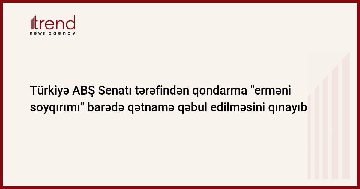 ABŞ Senatının Osmanlı İmperiyasında qondarma "erməni soyqırımı"nın tanıması ilə bağlı qəbul etdiyi qərarın Ankara və Vaşinqton arasındakı ikitərəfli əlaqələrin gələcəyinə təhdid edir.