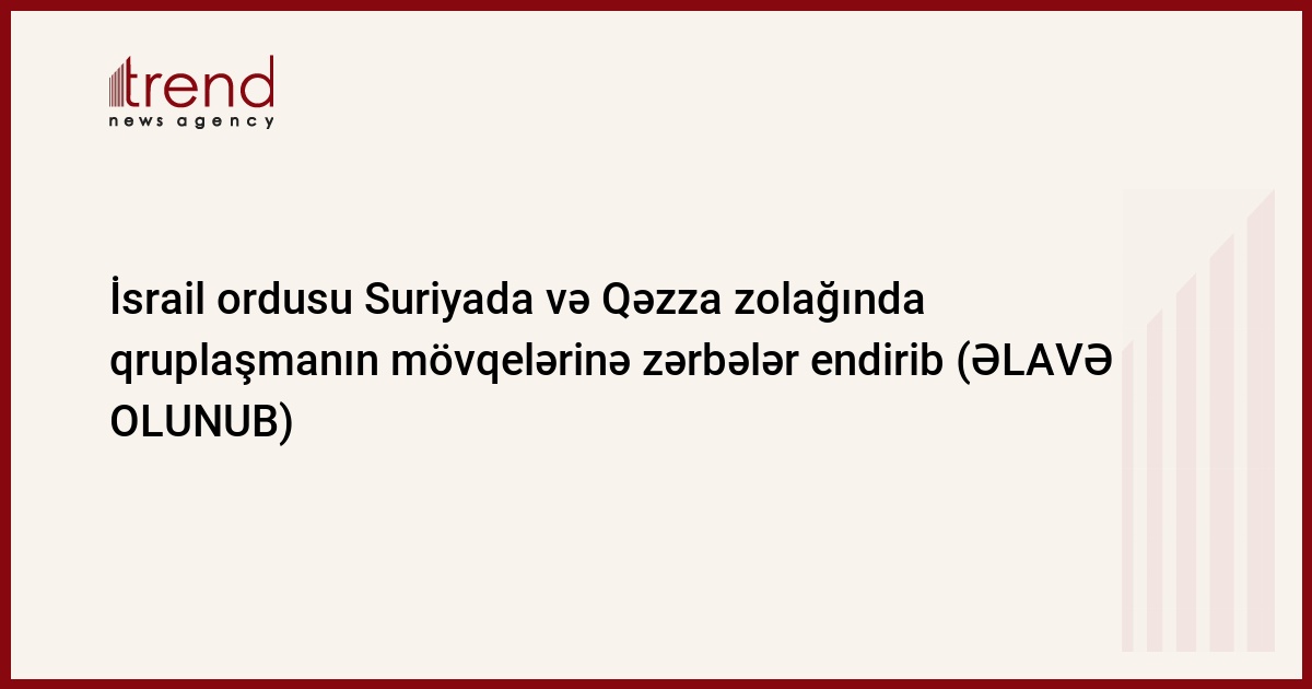 Məlumatda deyilir: "İsrail Müdafi Ordusu Suriayda və Qəzza zolağında "İslam cihadı" terror qruplaşmasının mövqelərinə zərbələr endirib".
