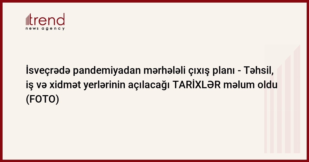 İsveçrə Konfederasiyasının Federal Şurası COVİD-19 pandemiyası ilə bağlı mərhələli çıxış qərarına gəlib və bununla əlaqədar olaraq, 3 mühüm tarixi (27.04.2020, 11.05.2020 və 08.06.2020) əhalinin diqqətinə çatdırıb.