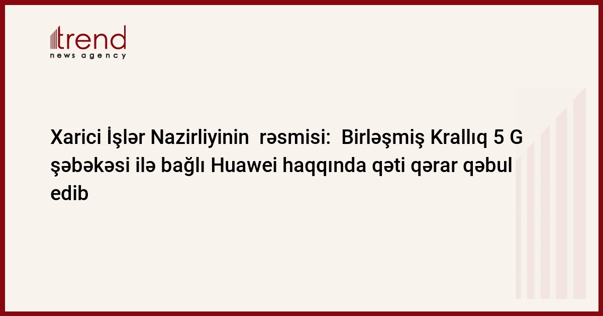 Xarici İşlər Nazirliyinin rəsmisi: Birləşmiş Krallıq 5 G şəbəkəsi ilə bağlı Huawei haqqında qəti qərar qəbul etmişdir: