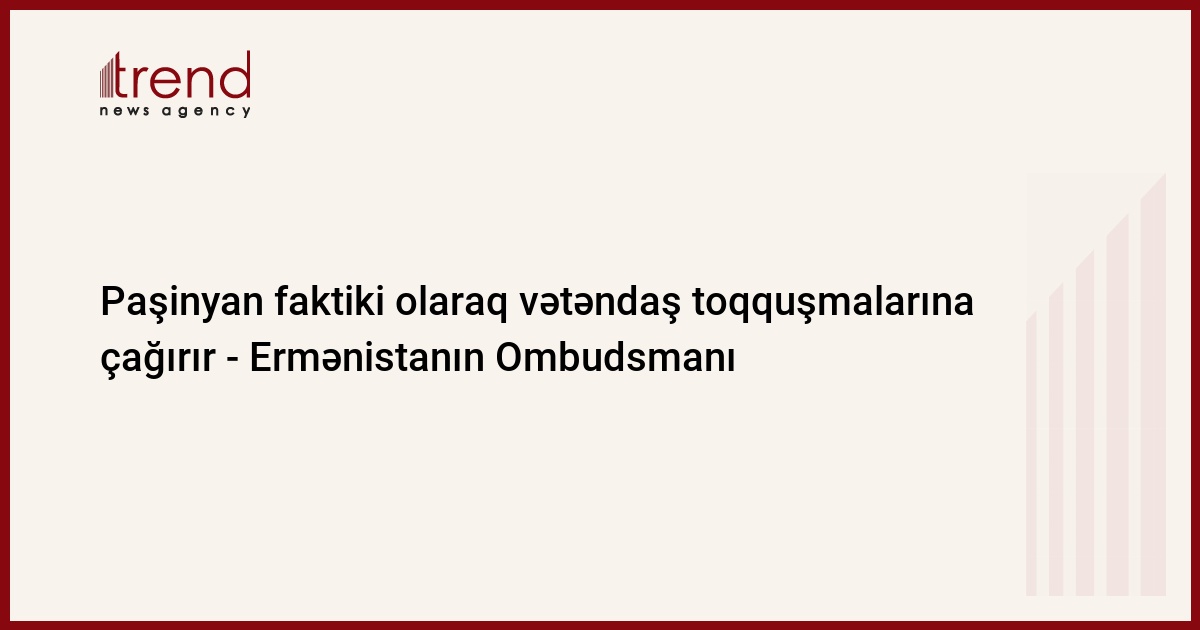 Trend-in erməni KİV-lərinə istinadən verdiyi məlumata görə, bu barədə özünün "Facebook" səhifəsində Ermənistanın Ombudsmanı Arman Tatoyan yazıb.