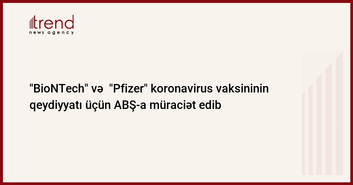 Almaniyanın "BioNTech" və ABŞ-ın "Pfizer" əczaçılıq şirkətləri ABŞ-ın Qida məhsulları və dərmanların keyfiyyətinə nəzarət İdarəsinə koronavirus vaksininin qeydiyyata alınması üçün müraciət edib.