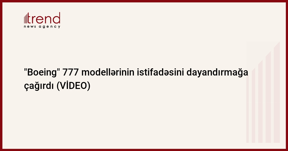 "Boeing" şirkəti ABŞ-dakı aviaşirkətlərə "Pratt & Whitney PW 4000" mühərrikləri ilə işləyən "Boeing 777" təyyarələrinin istifadəsini dayandırmağı tövsiyə edib.