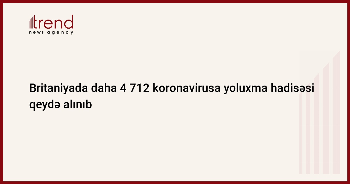 Böyük Britaniyada ötən sutka ərzində yeni növ koronavirusa (COVİD-19) 4 712 yoluxma halı qeydə alınıb.