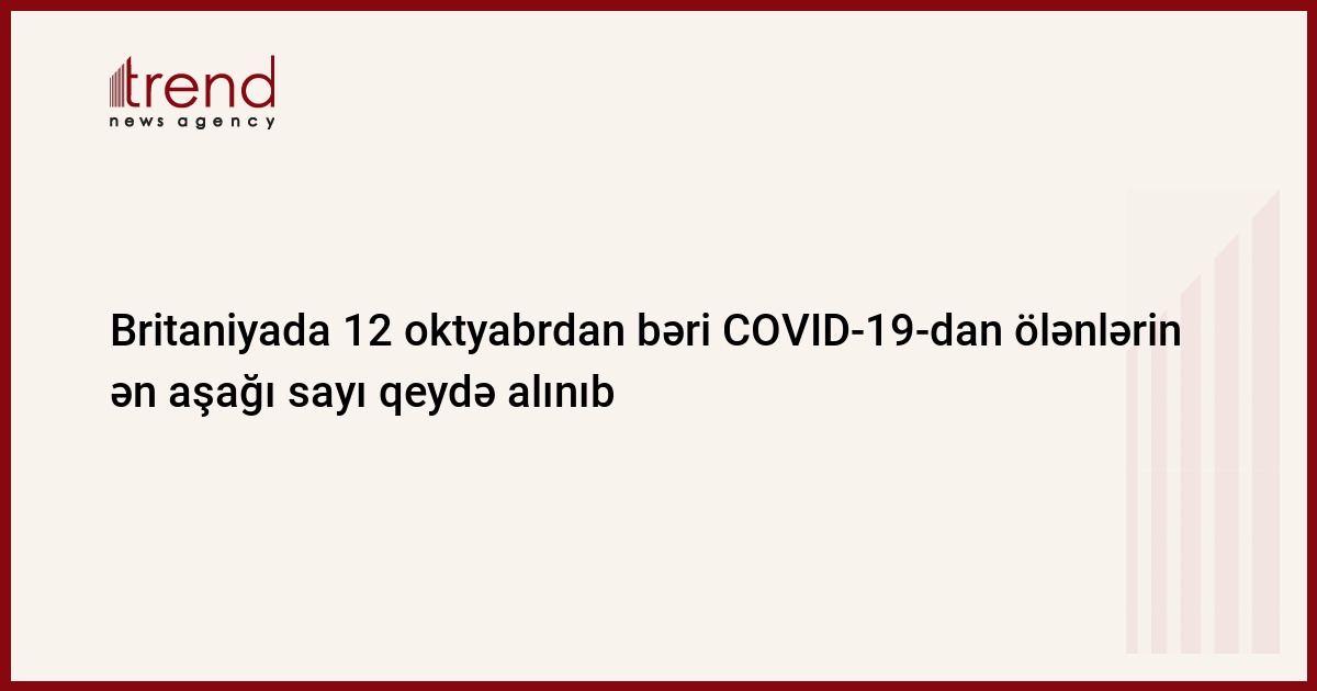 Böyük Britaniyada 24 saat ərzində koronavirusun yaratdığı xəstəlikdən ölən xəstələrin sayı 52 nəfər təşkil edib, bu da keçən ilin 12 oktyabrından bəri ən aşağı göstəricidir.