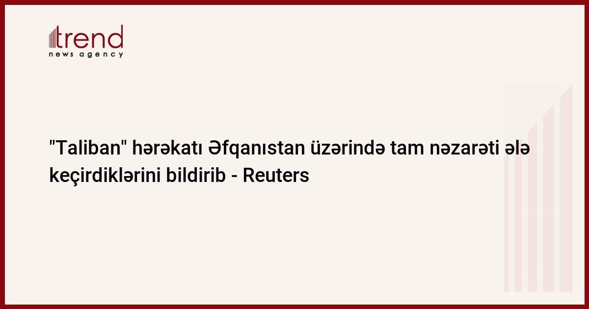 "Taliban" hərəkatı Pəncşir vilayəti də daxil olmaqla bütün Əfqanıstan üzərində tam nəzarəti ələ keçirdiklərini bildiriblər.