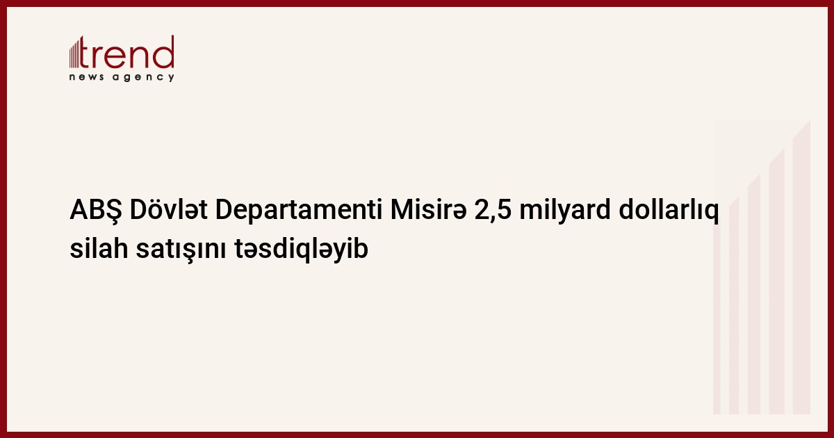 ABŞ Dövlət Departamenti Misirə 2,5 milyard dollarlıq silah satışını təsdiqlədiyini açıqlayıb.