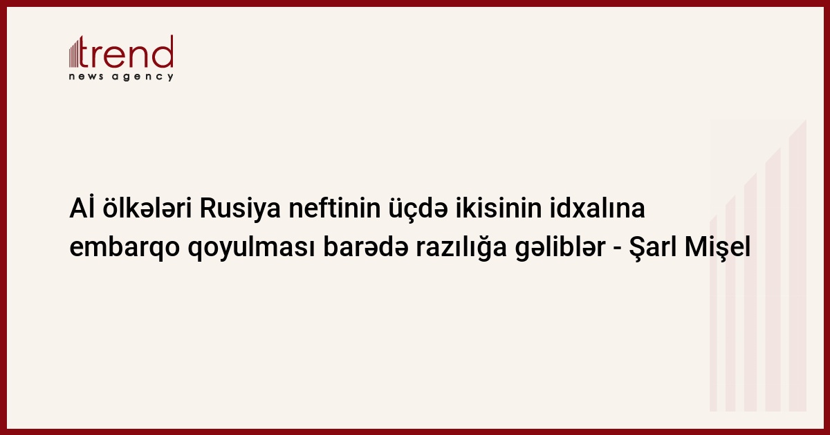 "Rusiya neftinin Aİ-yə ixracını qadağan edən razılaşma əldə olunub. Bu, Rusiyanın neft idxalının üçdə ikisindən çoxunu əhatə edir və onun müharibə maşını üçün böyük maliyyə mənbəyini kəsir. Müharibəni bitirmək üçün Rusiyaya maksimum təzyiq", - deyə Ş.Mişel öz "Twitter" səhifəsində yazıb.