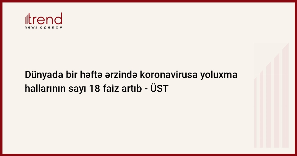 Məlumata əsasən, daha öncəki həftə ilə müqayisədə yoluxma hallarının sayı 18 faiz, ölüm hallarının sayı isə 3 faiz artıb.