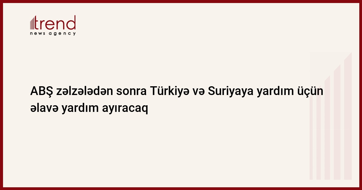 ABŞ administrasiyası Türkiyə və Suriyadakı zəlzələlərdən sonra humanitar yardım üçün əlavə 100 milyon dollar ayırmaq niyyətindədir.