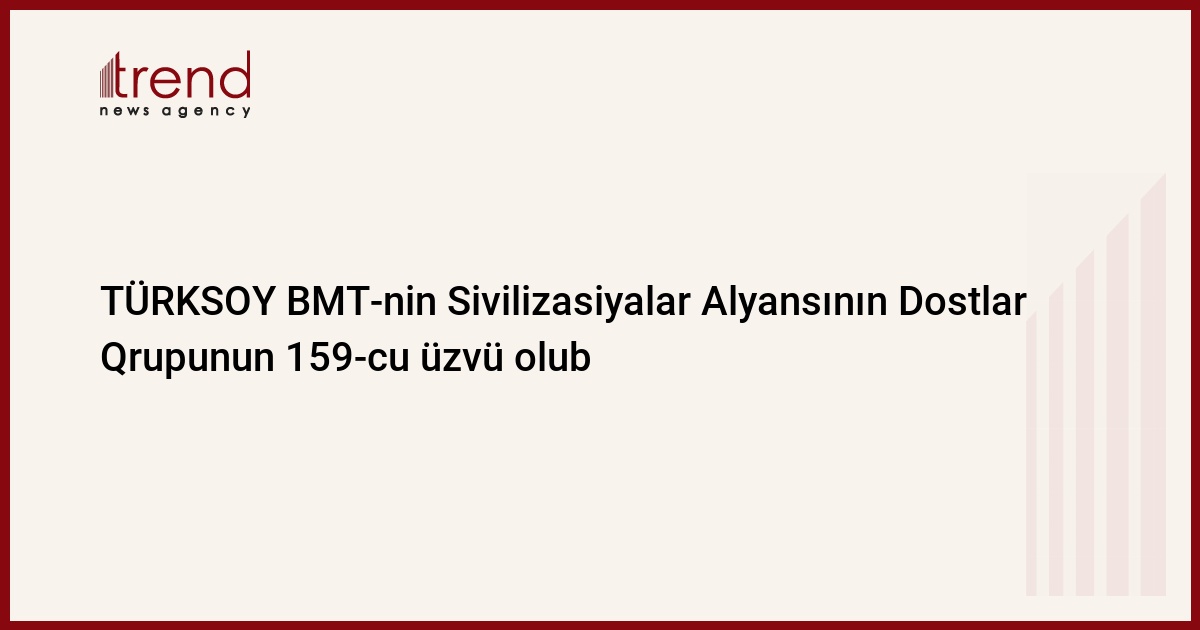 Beynəlxalq Türk Mədəniyyəti Təşkilatı (TÜRKSOY) Birləşmiş Millətlər Təşkilatının (BMT) Sivilizasiyalar Alyansının (UNAOC) Dostlar Qrupunun 159-cu üzvü oldu.