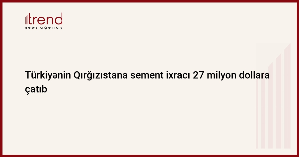 Türkiyə 2023-cü ilin yanvar-iyul aylarında Qırğızıstana sement ixracını ötən ilin eyni dövrü ilə müqayisədə 31 dəfə artaraq 27 milyon dollara çatdırıb.