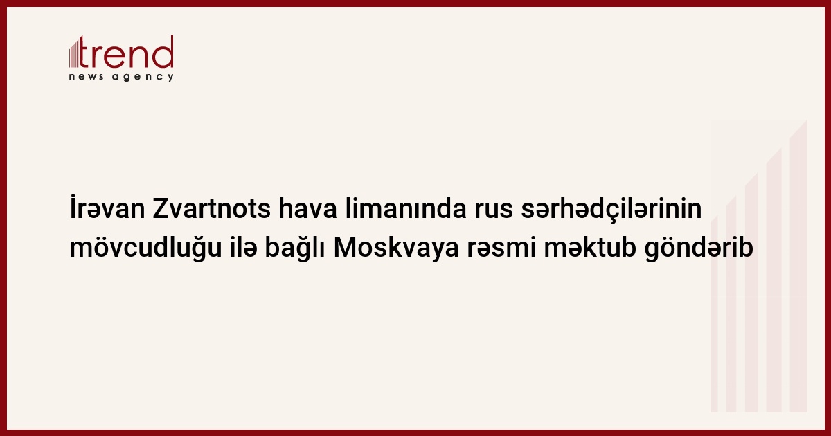 İrəvan Zvartnots hava limanında rus sərhədçilərinin mövcudluğu ilə bağlı Moskvaya rəsmi məktub göndərib.