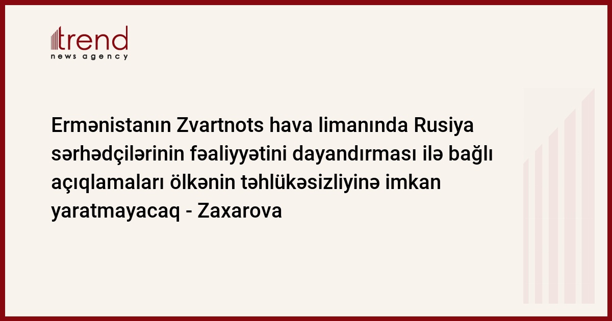 Ermənistan tərəfinin Zvartnots hava limanındakı Rusiya sərhədçilərinin fəaliyyətini dayandırması ilə bağlı açıqlamaları ölkənin təhlükəsizliyinə imkan yaratmayacaq.