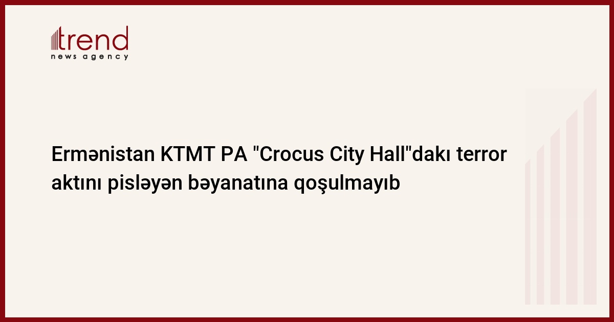 Ermənistan Kollektiv Təhlükəsizlik Müqaviləsi Təşkilatının Parlament Assambleyasının "Crocus City Hall"dakı terror aktını pisləyən bəyanatına qoşulmayıb.