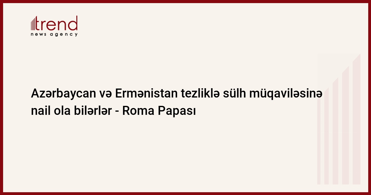 Trend-in məlumatına görə, Roma Papası deyib ki, Azərbaycan və Ermənistan beynəlxalq ictimaiyyətin dəstəyi ilə dialoqu davam etdirə və ən qısa zamanda sülh müqaviləsinə nail ola bilər.