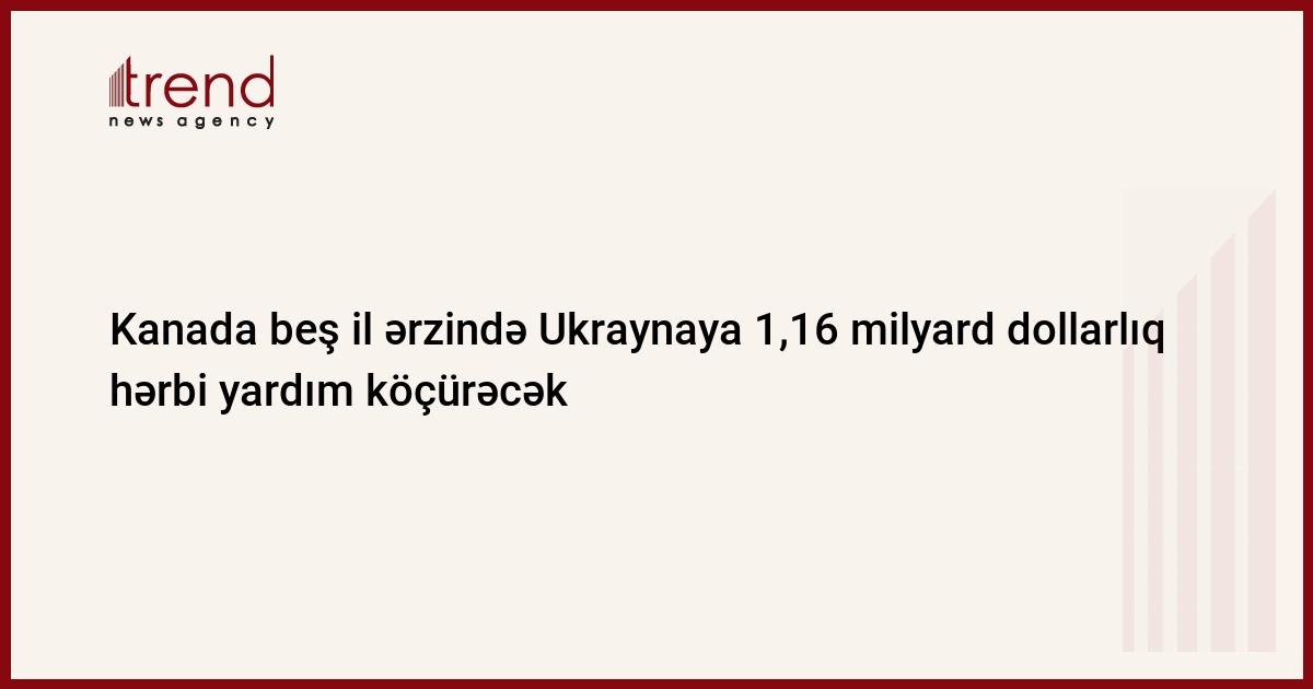 Kanada hakimiyyəti növbəti beş il ərzində Ukraynanı 1,6 milyard Kanada dolları (1,16 milyard dollar) dəyərində öldürücü və qeyri-öldürücü silahlarla təmin etmək niyyətindədir.