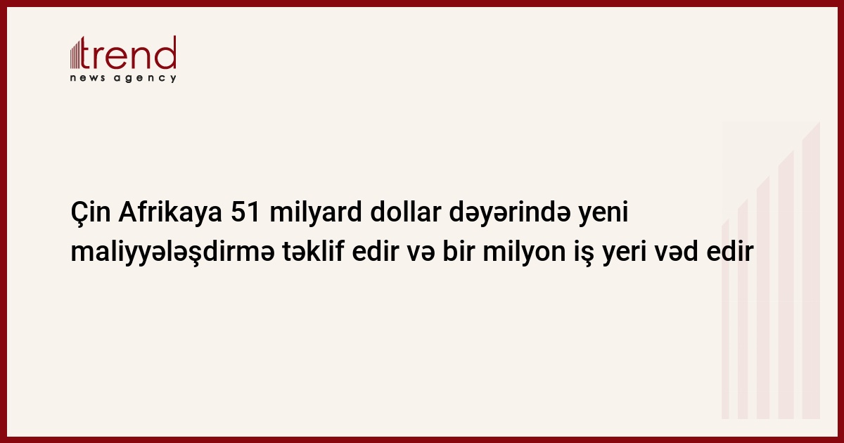 Çin Afrikaya 51 milyard dollar məbləğində yeni maliyyə dəstəyi təklif edir və 1 milyon iş yeri yaratmağı planlaşdırır.