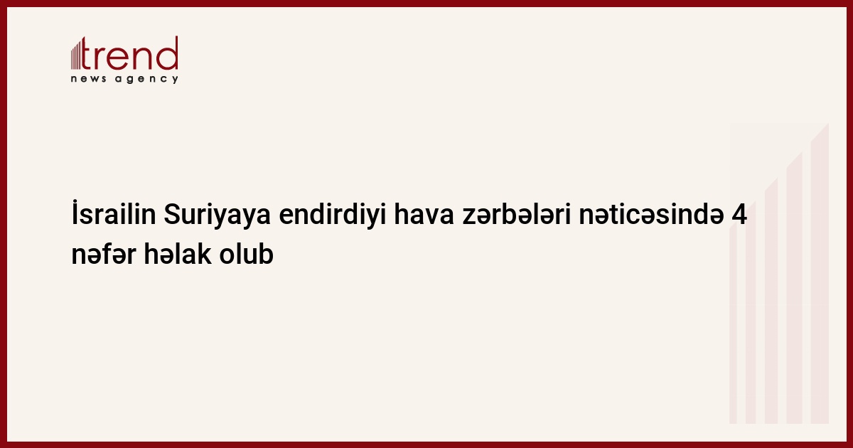 İsrail Hərbi Hava Qüvvələrinin Suriyanın Həma əyalətindəki hədəflərə endirdiyi hava zərbələri nəticəsində azı 4 nəfər ölüb, 15 nəfər yaralanıb.