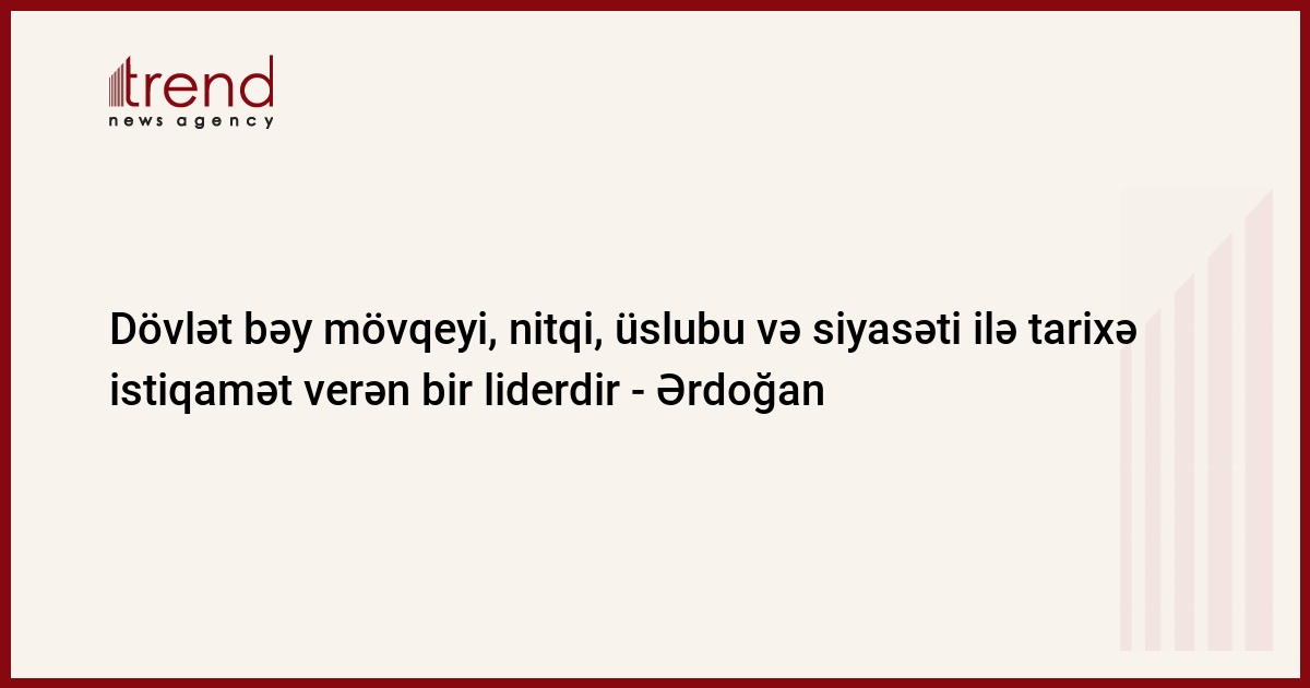 Dövlət bəy, cəsur çıxışları, düşüncələri ilə daim tarixdə iz qoyan və tarixə istiqamət verən bir liderdir. O, vətənə, millətə, respublikaya olan sevginin və ən önəmlisi, milliyyətçiliyin mənasını ən açıq, ən vurğulu şəkildə izah edərək, anlayanlar üçün və mahiyyətə yönəlmək iradəsi göstərə bilənlər üçün hər fürsətdə öz düşüncələrini açıq şəkildə çatdırmışdır”, - Ərdoğan deyib.