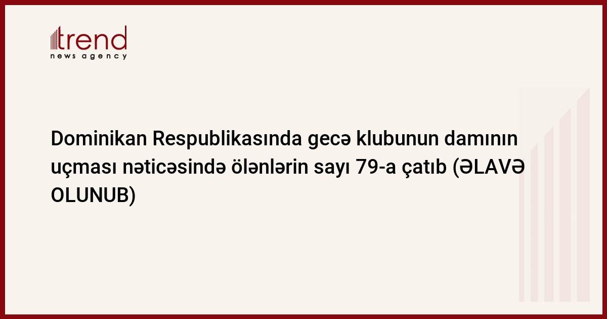 Dominikan Respublikasının paytaxtı Santo Dominqoda yerləşən "Jet Set" gecə klubunun damının uçması nəticəsində ölənlərin sayı 79-a yüksəlib.
