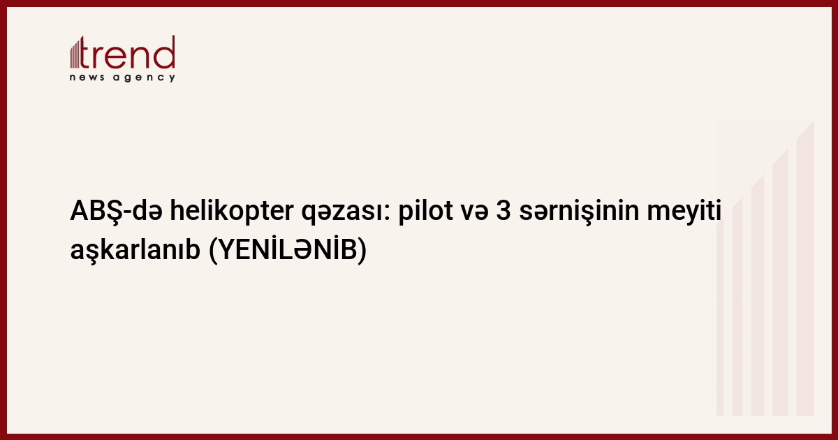 ABŞ-nin Finiks şəhəri yaxınlığındakı dağlarda özəl helikopter qəzaya uğrayıb.