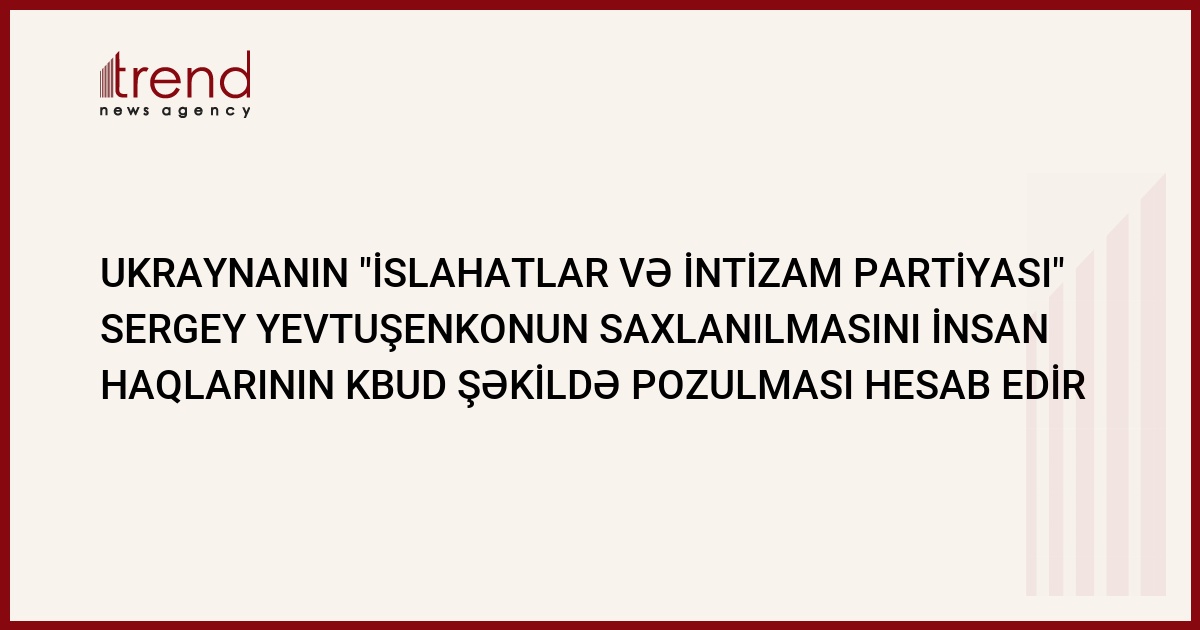 İİP məlum olmayan səbəblərə görə həbs olunmasına etiraz edir. "İslahatlar və İntizam Partiyası S.Yevtuşenkonun həbsi ilə bağlı insidentin izavh olunmasını və ondan üzr istənilməsini tələb edir.