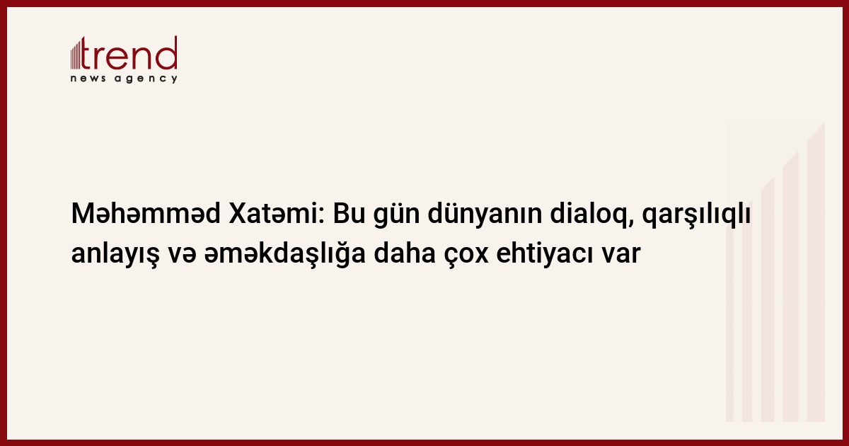 Bu gün dünyanın dialoq, qarşılıqlı anlayış və əməkdaşlığa daha çox ehtiyacı var. Bunu İranın keçmiş prezidenti Məhəmməd Xatəmi Şirazda bildirib.