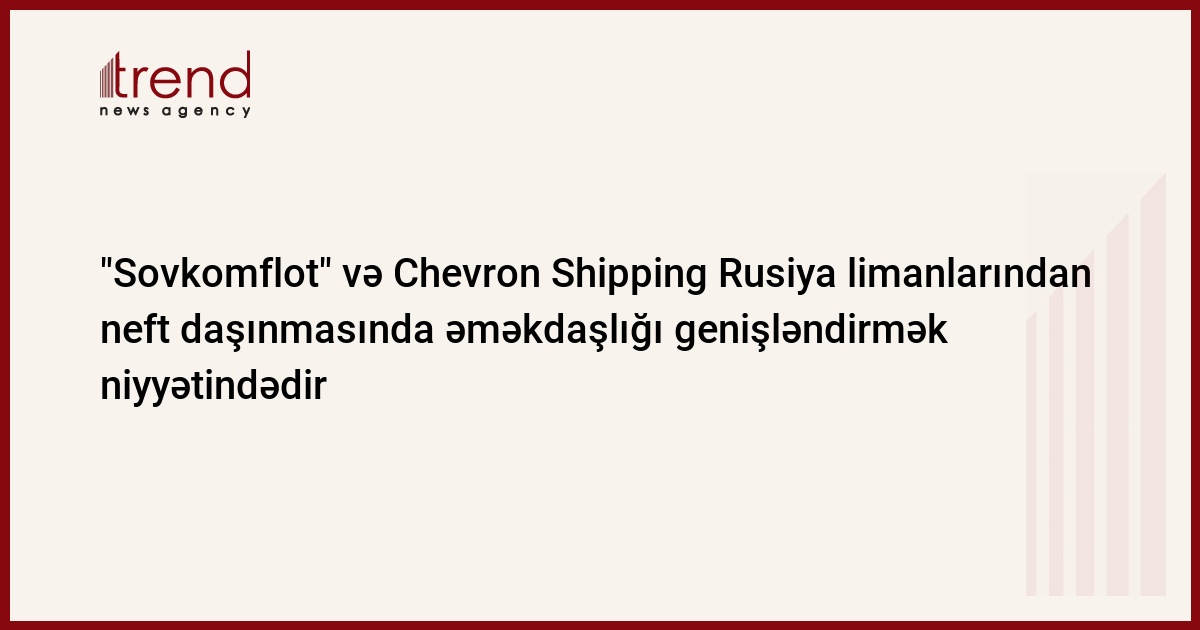 "Sovkomflot" SC və Chevron Shipping Company MMC (ABŞ) qarşılıqlı anlayış haqqında memorandum imzalayıb. Sənədə əsasən, tərəflər Rusiya limanlarından xam neftin daşınmasında əməkdaşlığı genişləndirmək niyyətindədir. Əməkdaşlıq obyektləri sırasında - Xəzər Boru Kəməri Konsorsiumunun terminallarından neftin daşınmasıdır.