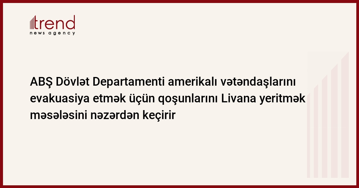 ABŞ Dövlət Departamenti Livanda vəziyyət gərginləşdiyi təqdirdə Amerika vətəndaşlarını evakuasiya etmək üçün ora qoşunlarını yeritməyin mümkünlüyünü nəzərdən keçirir. Bu barədə "SBS" telekanalı Amerkia administasiyasından olan anonim mənbələrə istiənadən xəbər verir. Müzakirə olunan variantlar arasında hazırda İordaniyada təlimlərdə olan 2 min dəniz piyadasının göndərilməsi məsələsi də var. Bundan əlavə, Aralıq dənizində həmin təlimlərdə iştirak edən hərbi gəmilərin də Livan sahillərinə göndərilməsi ehtimalı nəzərdən keçirilir. Daha bir variant isə Avropadakı hərbi bazalarındakı vertolyotlar vasitəsilə amerikalıların Kiprə evakuasiyasıdır.