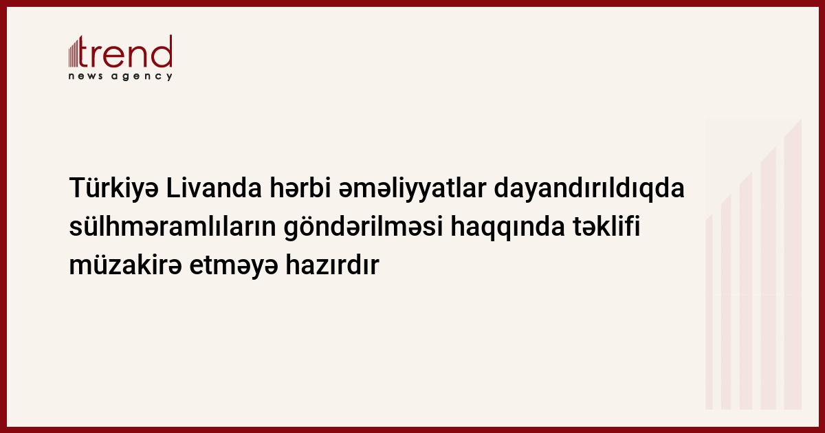 Türkiyə Livanda hərbi əməliyyatlar dayandırıldıqda sülhməramlıların göndərilməsi haqqında təklifi müzakirə etməyə hazırdır. Bu barədə Türkiyənin baş naziri Rəcəb Tayyib Erdoğan "SNN" kanalına bildirib.