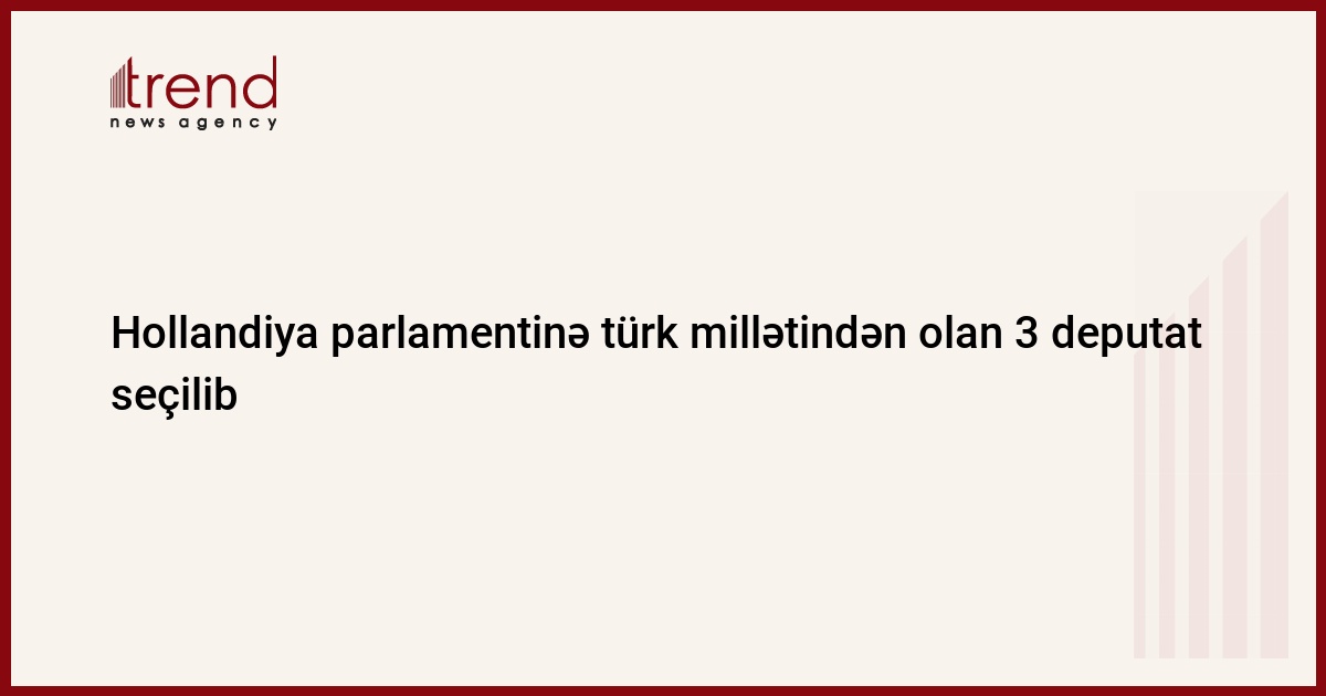 Hollandiyada baş tutmuş ümumi seçkilərin yekununa görə bu ölkənin türk millətindən olan üç vətəndaşı ölkə parlamentinə seçilib.