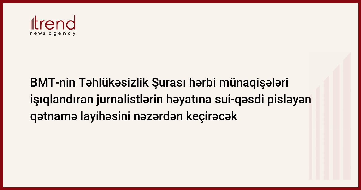 BMT-nin Təhlükəsizlik Şurası hərbi münaqişələri işıqlandıran jurnalistlərin həyatına sui-qəsdi pisləyən qətnamə layihəsini bu gün nəzərdən keçirəcək.