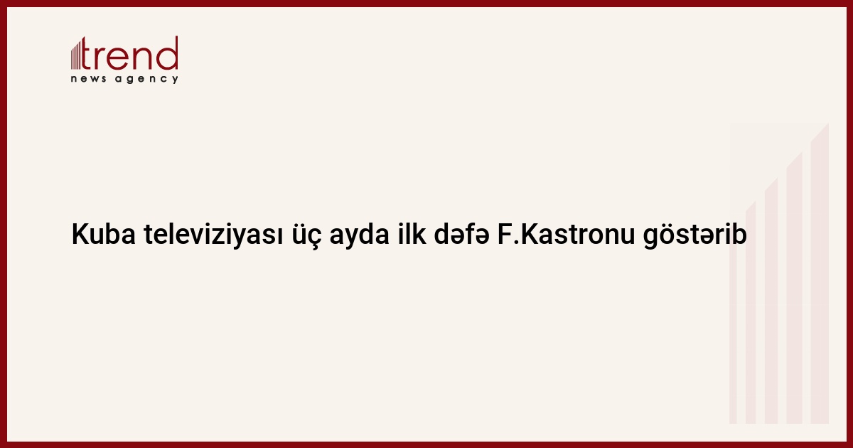 Kuba televiziyası Fidel Kastronun Venesuela prezidenti Uqo Çaveslə görüşünü göstərib. "Reuters" agentliyi xəbər verir ki, kubalılar öz prezidentinin son üç ayda ilk dəfə görüblər. 80 yaşlı lider artıq bir qədər güc toplamış, lakin yorğun görünüb. F.Kastro və U.Çavesin görüşü 2007-ci il yanvarın 29-da baş tutub. Görüş iki saat sürüb və özəl xarakter daşıyıb.