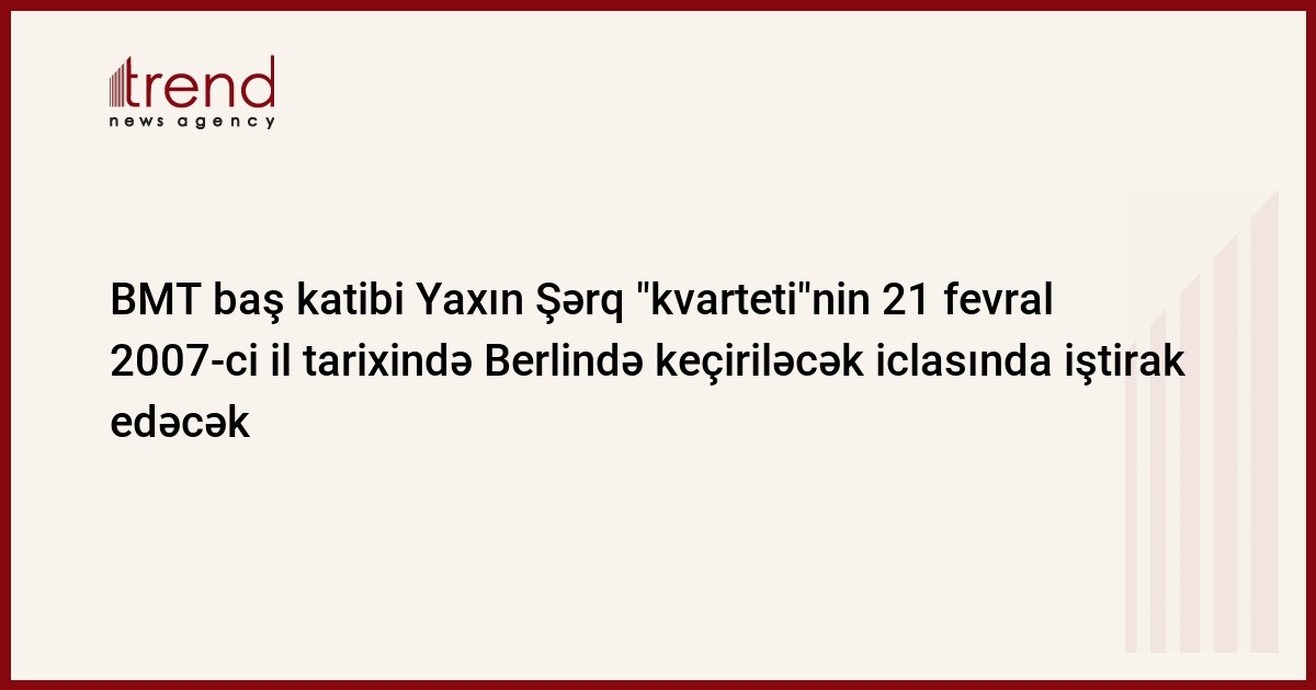BMT baş katibi Pan Gi Mun Yaxın Şərq tənzimlənməsi üzrə dörd vasitəçinin gələn həftə Berlində keçiriləcək iclasında iştirak edəcək. Bu barədə Trend www.rbc.ru saytına istinadən xəbər verir.