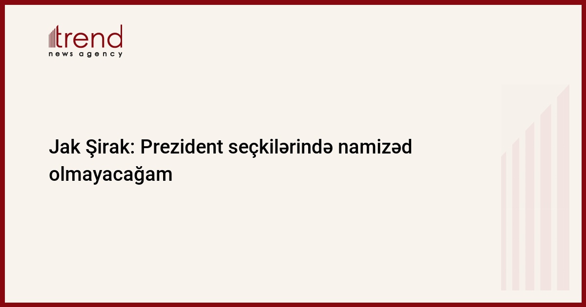 Fransa, Strasburq/ Trend müxbir E.Məcidli/ Fransa prezidenti Jak Şirak gələn ay keçiriləcək prezident seçkilərində iştirak etməyəcəyini bildirib.