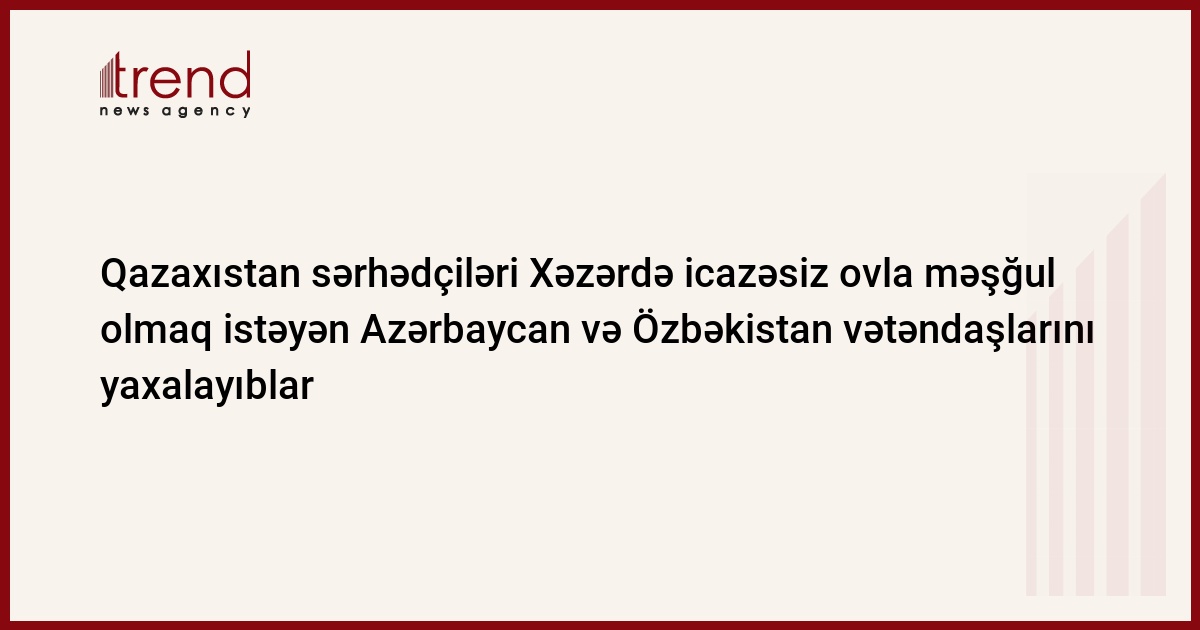 Qazaxıstanın Milli Təhlükəsizlik Komitəsi Sərhəd Xidmətinin (MTK SX) çərşənbə günü yayılan pres-relizində verilən məlumata əsasən, xarici vətəndaşlar respublikanın dövlət sərhədini "qanunsuz ov və Xəzər dənizinin Qazaxıstan hissəsində balıq tutmaq" məqsədilə pozublar.