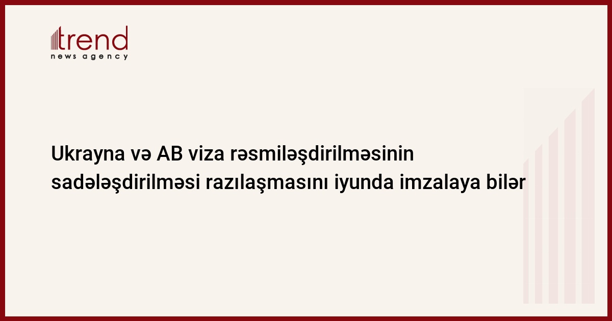 Ukrayna, Kiyev /müxbir. Trend Z.Novosvitskiy/ Ukraynanın Avrona Birliyində (AB) səfiri Roman Şnek istisna etmir ki, Ukrayna və AB arasında vizaların rəsmiləşdirilməsinin sadələşdirilməsi barədə razılaşma iyunun 18-də AB-Ukrayna əməkdaşlıq Şurasının iclası çərçivəsində imzalana bilər.