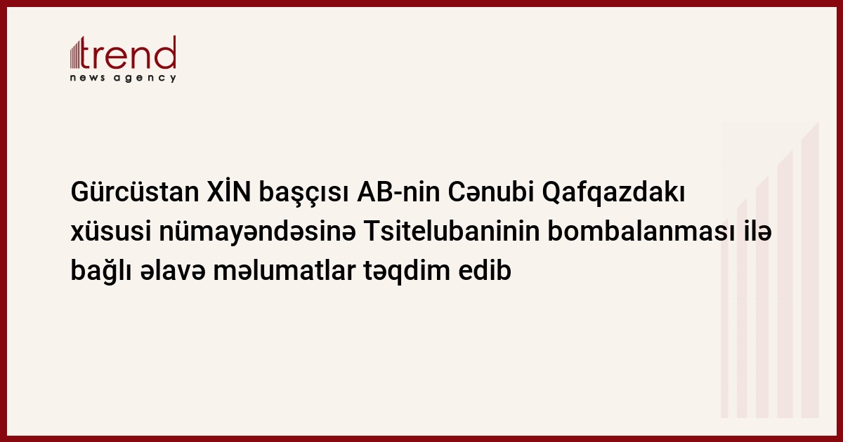 Gürcüstan, Tbilisi/ Trend , müxbir N.Kirtsxalia/ Gürcüstan XİN başçısı Gela Bejuaşvili Avropa Birliyini avqustun 6-da Rusiya aviasiyası tərəfindən Tsitelubani kəndinin bombalanması faktı ilə bağlı dövlətlərarası ekspert qrupunun apardığı araşdırmalara aktiv qoşulmağa çağırıb. Gürcüstan XİN-dən bildiriblər ki, mövzu ilə bağlı Bejuaşvili AB-nin Cənubi Qafqazdakı xüsusi nümayəndəsi Piter Semnebi ilə telefonla danışıq aparıb.